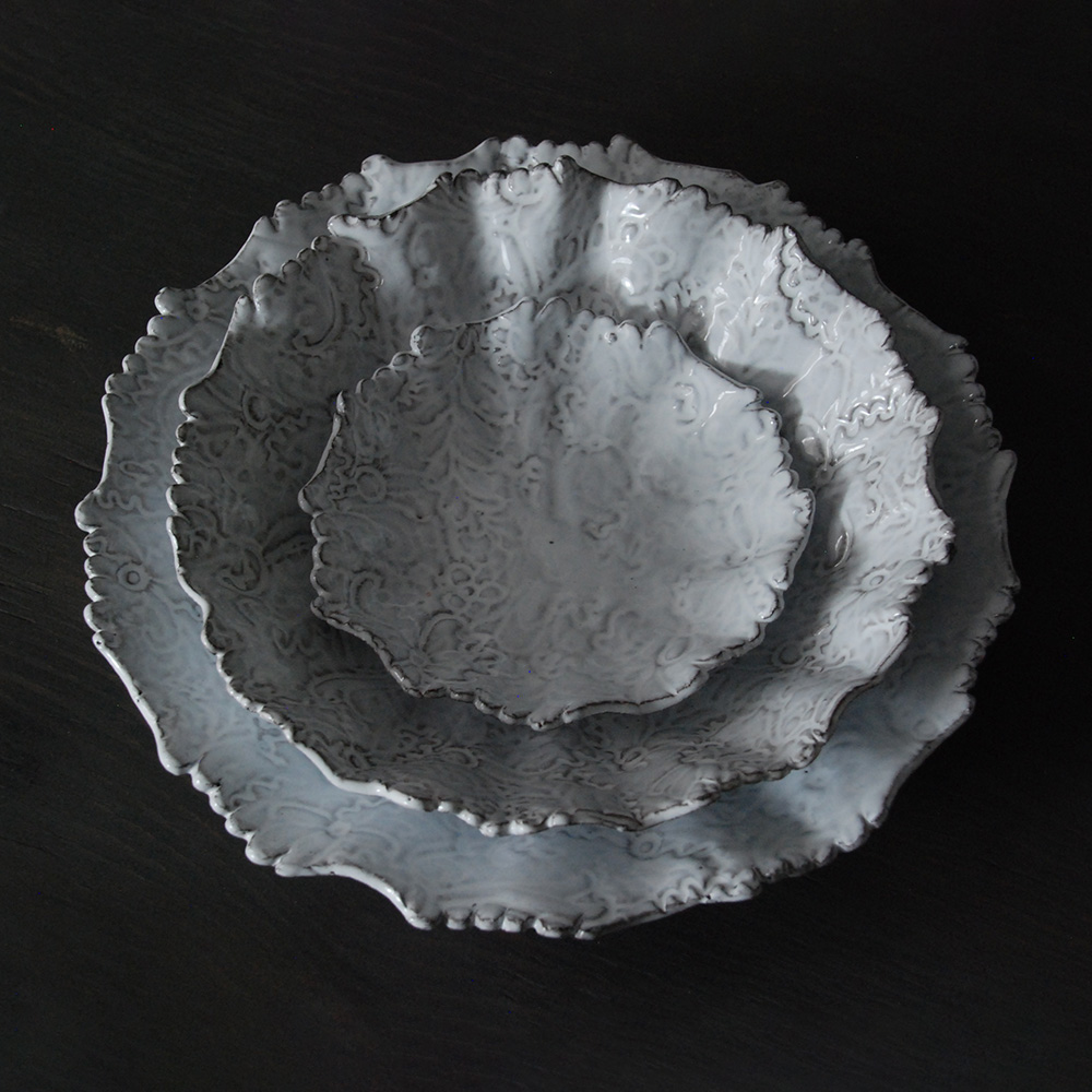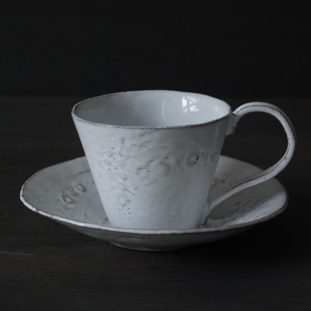 パリで採れる土。白い釉薬をかけその下に透ける様はこの土ならではの美しさです。
