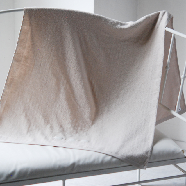 表が無撚糸パイル、裏がガーゼ織りになっており、ソフトで吸水力に優れたタオルです。