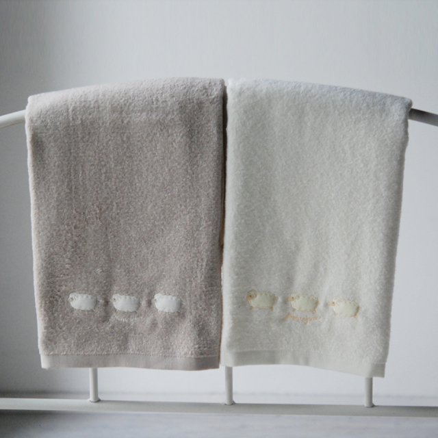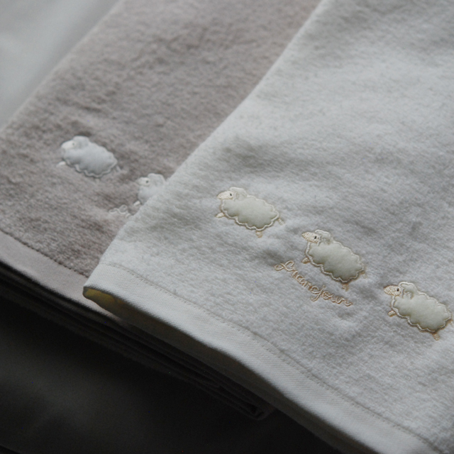 ひつじのアップリケ刺繍が施されたミニョンシリーズ。
