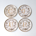 花と文字をモチーフにした華やかなデザインのコースター4点セット。