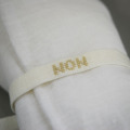 フランス語のメッセージ ”NON(いいえ)”が入った刺繍入りリボン。