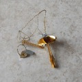 繊細な吹きガラス、真鍮製のゴールドブレード、素朴なジンクオブジェ、クリスマスグッズ、パールや小さなベルなど。